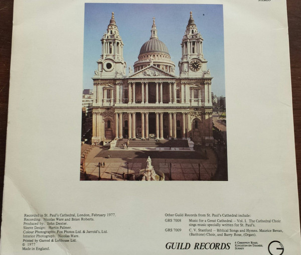 Recorded in St. Paul's Cathedral, London, February 1977. Printed by. Robert Stace; © 1977, Made in England;