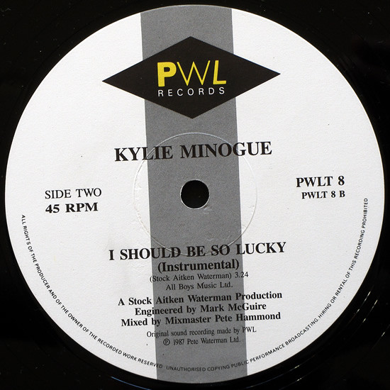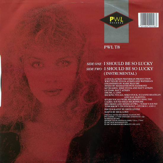 Written by credits are printed on the back cover as "Stock, Aitken And Waterman", but printed on the labels as "Stock Aitken Waterman".