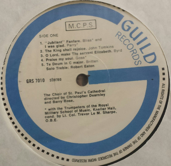 Recorded in St. Paul's Cathedral, London, February 1977. Printed by. Robert Stace; © 1977, Made in England;